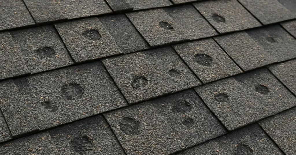 - Fracture shingle granules, exposing underlying asphalt to UV damage and leaks